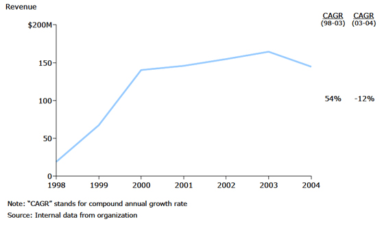 Revenue growth: Nehemiah grew rapidly from its founding through 2003. Its revenues began to fall off in 2003 as competition became more intense.